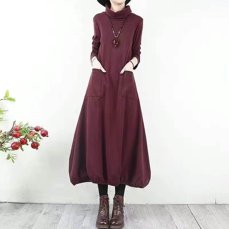 優雅なタートルネックとふんわりとしたバルーンスカートが魅力のロングワンピース。大人の女性にぴったりのデザインで、どんなシーンでも華やかさを演出します。リラックスした着心地ながら、洗練された印象を与え、コーディネートの幅も広がります。シンプルなアクセサリーと合わせて、上品なスタイルを楽しんでください。